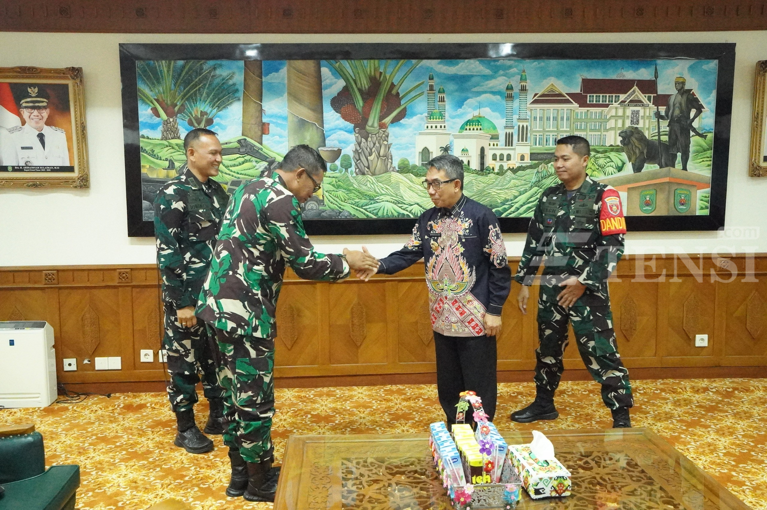 SANGATTA – Pemerintah Kabupaten (Pemkab) Kutai Timur (Kutim) memperkuat sinergi dengan TNI Angkatan Darat (AD) untuk membangun daerah, sekaligus memperkuat sistem pertahanan nasional. Dalam kunjungan kerja ke Kutim, Kolonel ARM Tejo Widuri, Paban I/Ren Sterad, diterima langsung oleh Bupati Ardiansyah Sulaiman di ruang kerjanya.