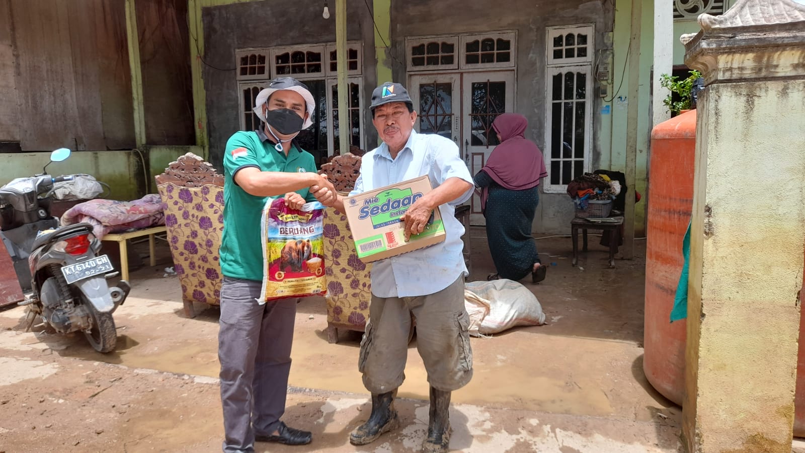 Kutai Timur -Pasca banjir yang melanda Sangatta dan Sangatta Selatan, Forum Petani Kelapa Sawit Kab.Kutai Timur bersama dengan anggota turut menyalurkan bantuan paket sembako kepada masyarakat yang terdampak banjir di sejumlah titik, pada selasa (24/1/2021).